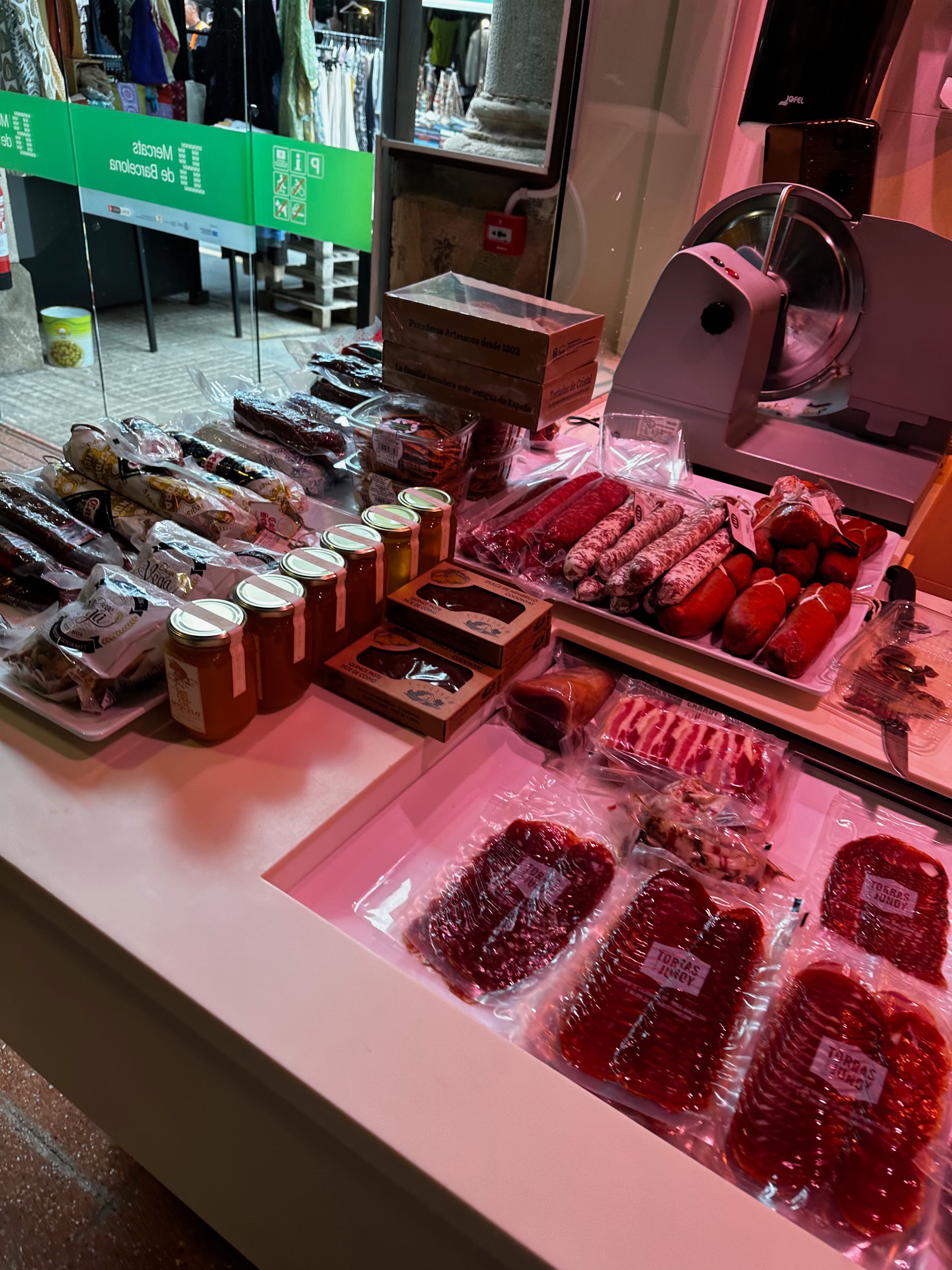 The fishmongers are perhaps the most impressive. Whole doradas, gleaming sardines, and cuttlefish so fresh they still shimmer under the lights sit beside trays of prawns and razor clams, cleaned and lined up like fine jewellery. It’s the kind of place where you overhear someone ask for a specific cut of hake for suquet de peix, and nobody needs to explain what that is.
